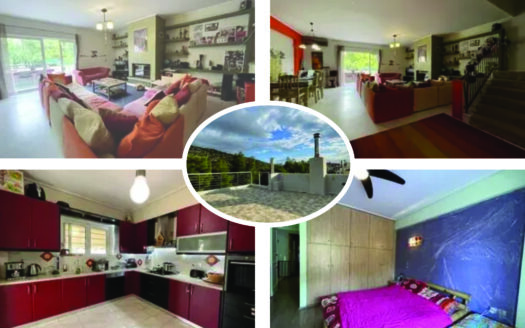 Απ΄όλους τους χώρους του σπιτιού και τα μπαλκόνια το βλέμμα ταξιδεύει με θέα το πράσινο και προς το απέραντο γαλάζιο.